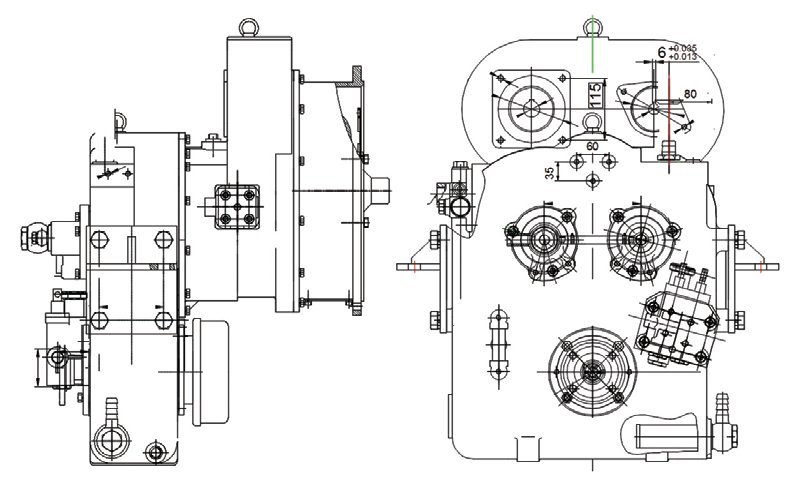 2. Its two clutch housings are connected as one and installed on the same shaft. The four sets of clutches work together to form two forward gears and two reverse gears. The structure is compact and has high transmission efficiency.